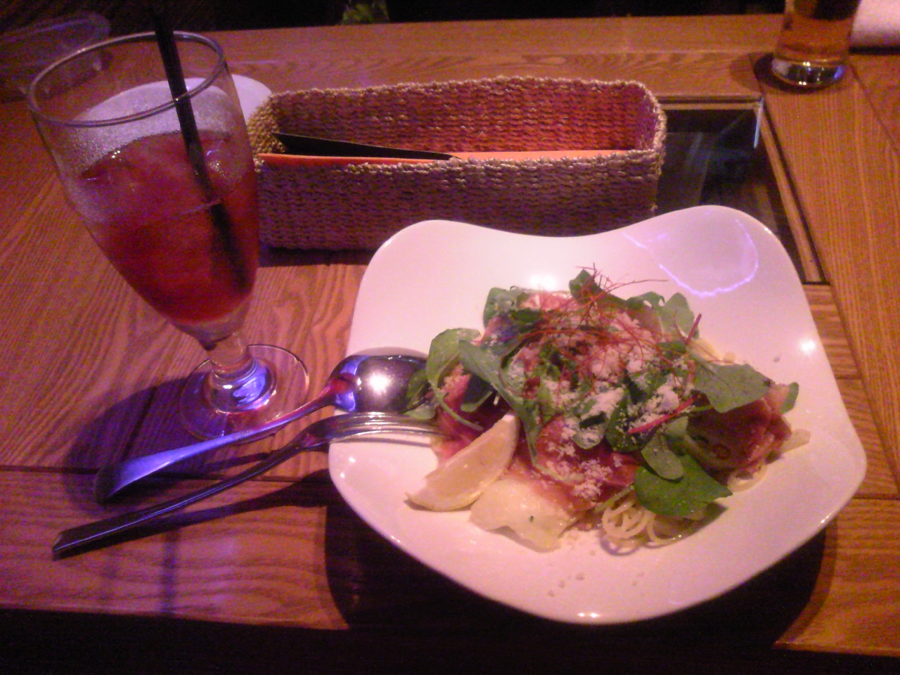 美味しいおいしいパスタと、クランベリージュース。